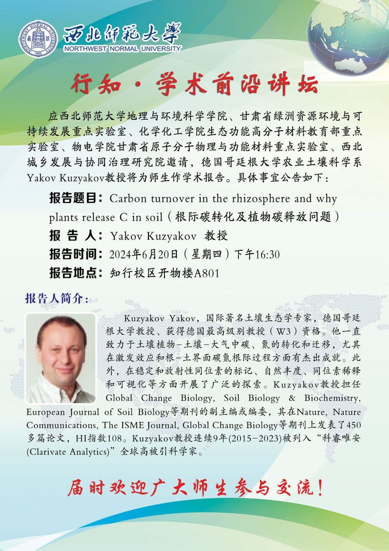 beat365行知•学术前沿讲坛2024-11期:Carbon turnover in the rhizosphere and why plants release C in soil(根际碳转化及植物碳释放问题)