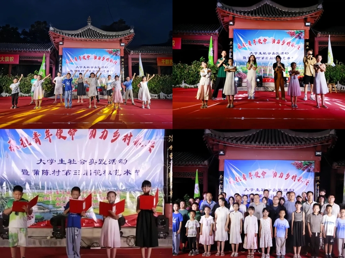 “花椒红了,蘑菇香了,蜂蜜甜了,这里是自然的馈赠,也是语言的沃土……”7月21日晚,蒲陈村文化广场上人声鼎沸,共同庆祝第三届花椒艺术节。为激发村民普通话学习兴趣,切实提高学生普通话表达能力,实践团大胆创新,拓展推普方式,在蒲陈村第三届花椒艺术节中,通过诗朗诵《礼县之光,共语普通话》、合唱《稻香》、话剧《四乡语趣桥》等节目,展现了普通话的重要性,让普通话的魅力更加深入人心。其中,由实践团设计、学生参与表演的诗朗诵《那是我的中国》、大合唱《开心往前飞》等节目通过普通话的实际运用,不仅提升了学生语言文化素养,还使学生自我表达能力有了明显提升,同时也增强了学生们的综合素质与自信。