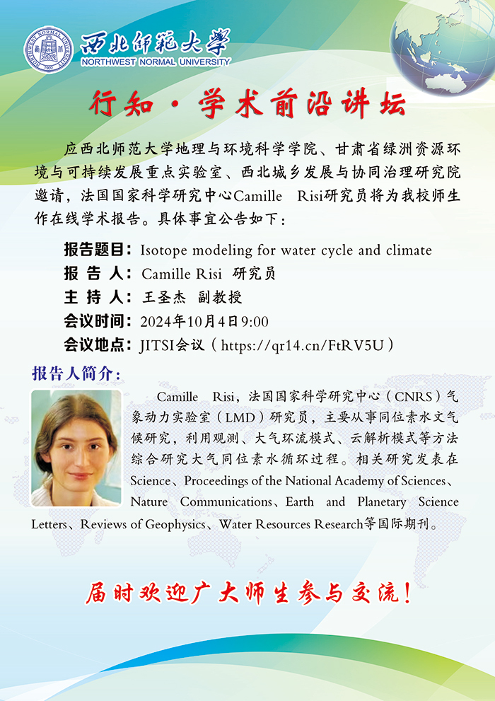 beat365行知•学术前沿讲坛2024-14期:Isotope modeling for water cycle and climate