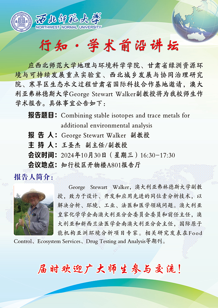 beat365行知•学术前沿讲坛2024-22期:Combining stable isotopes and trace metals for additional environmental analysis