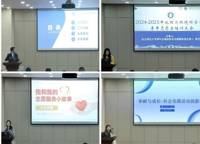 会议中,学院青年志愿者协会负责人刘思杰介绍了协会的基本情况和近一年来的工作开展情况。校青年志愿者协会志愿服务组负责人梁艺以自身志愿经历向同学们传递“如何做好志愿服务”的经验;学生代表潘开娜以“我和我的志愿服务小故事”为题阐释志愿服务意义;王芳红通过分享社会实践参与经历进一步阐述了志愿者精神。