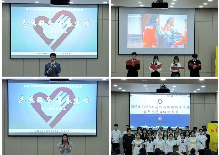 最后由青年志愿者代表进行才艺表演,在《歌曲串烧》《心桥》《日不落》《如果爱忘了》《志愿者的誓词》等节目中,同学们用青春声音谱写青春旋律,展现了地环青年的青春活力与朝气。会议在全体志愿者合唱《青年志愿者之歌》中落下帷幕。