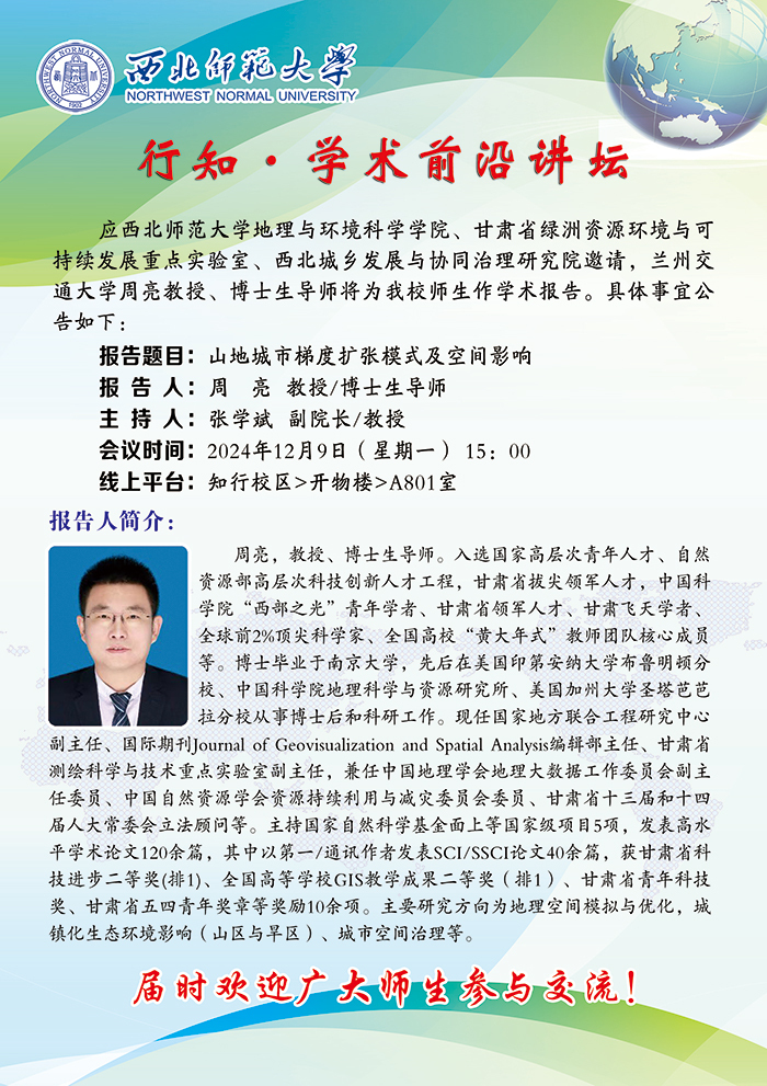 beat365行知•学术前沿讲坛2024-27期:山地城市梯度扩张模式及空间影响