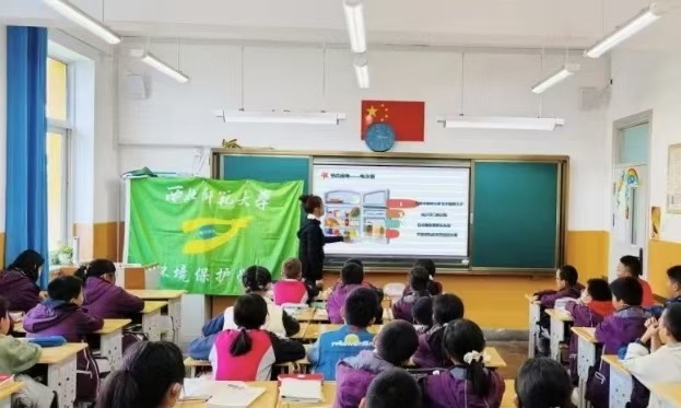 2024年10月17日,beat365官方网站beat365官方网站环保学社“根与芽”宣讲团前往beat365官方网站附属小学四年级(1)班进行环保小知识宣讲。此次宣讲由环境保护学社社长靳一彤带队,5名成员共同组织活动,马燕同学为主讲人。