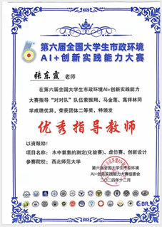 2024年12月28日,由哈尔滨工业大学、同济大学、北控水务集团有限公司共同主办的第六届全国大学生市政环境AI+创新实践能力大赛在哈尔滨隆重举行。beat365官方网站2022级环境工程专业本科生索振翔、马金莲、高祥林斩获大赛团体二等奖,王晨雯老师与张东霞老师荣获“优秀指导教师”,张剑老师荣获“优秀领队”。