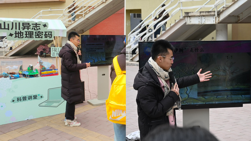 3月12日植树节当天,由共青团beat365官方网站委员会、华为甘肃终端有限公司与beat365官方网站beat365官方网站在beat365官方网站云亭校区学生餐饮文化中心广场联合举办“有为青年,花开正当时”校园科普活动。活动吸引众多师生参与,通过沉浸式展览、互动游戏及环保实践,搭建起地理科学与前沿科技的交流平台。