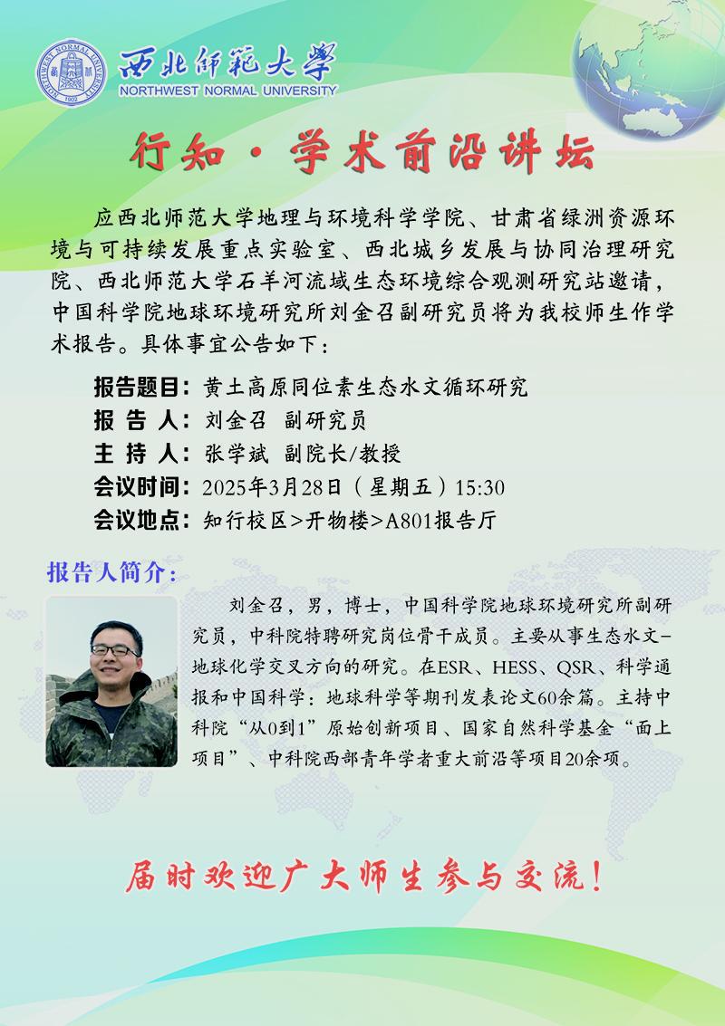 beat365行知•学术前沿讲坛2025-01期:黄土高原同位素生态水文循环研究
