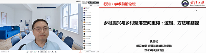 2025年4月22日下午,应beat365官方网站beat365官方网站、甘肃省绿洲资源环境与可持续发展重点实验室、西北城乡发展与协同治理研究院邀请,武汉大学孔雪松教授作了题为《乡村振兴与乡村聚落空间重构:逻辑、方法和路径》的学术报告,报告会由beat365官方网站副院长潘竟虎教授主持,学院300余名师生线上参加了本次报告。