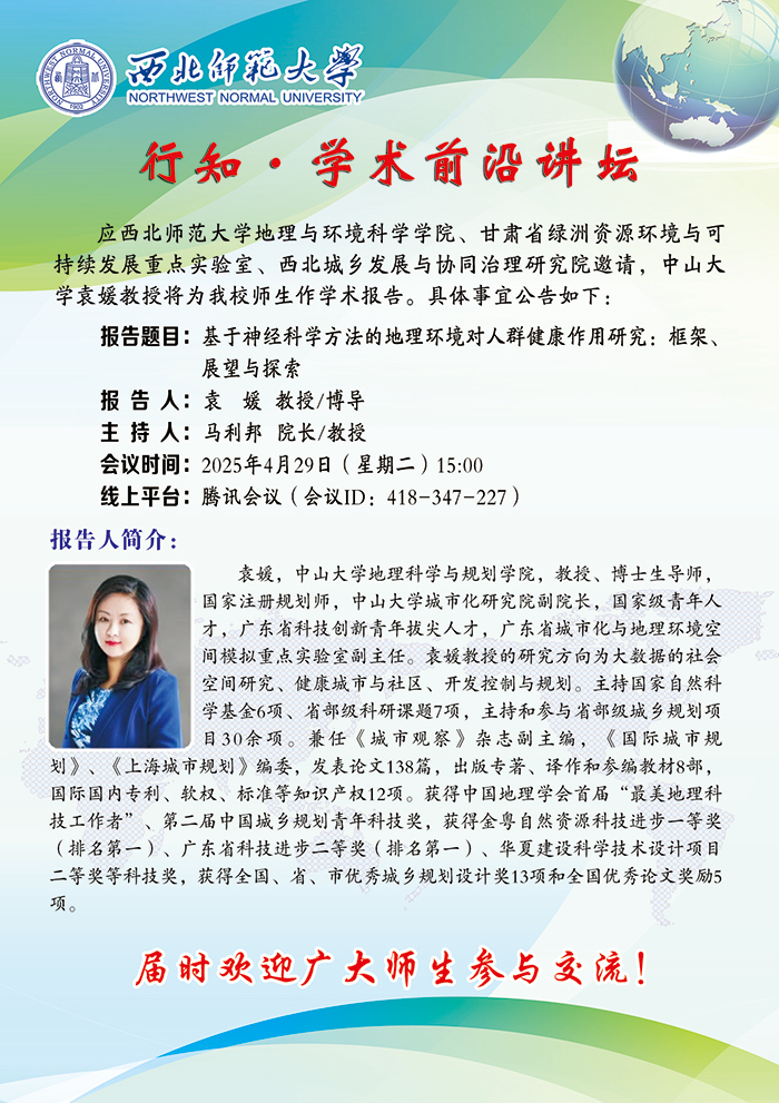 beat365行知•学术前沿讲坛2025-11期:基于神经科学方法的地理环境对人群健康作用研究:框架、展望与探索