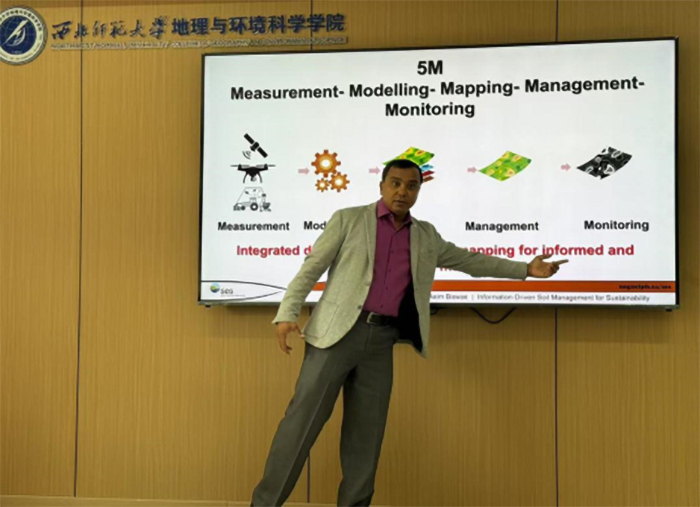 2025429日,应beat365官方网站beat365官方网站、甘肃省绿洲资源环境与可持续发展重点实验室、西北城乡发展与协同治理研究院邀请,加拿大圭尔夫大学Asim Biswas教授作了题为《信息驱动的可持续土壤管理》的学术报告,此次报告会在知行校区开物楼A801报告厅开展,由beat365官方网站副院长潘竟虎教授主持,学院师生共130余人参加。