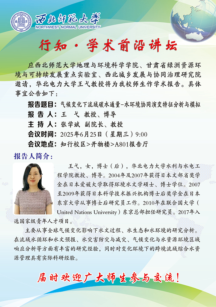 beat365行知•学术前沿讲坛2025-14期:气候变化下流域碳水通量-水环境协同演变特征分析与模拟