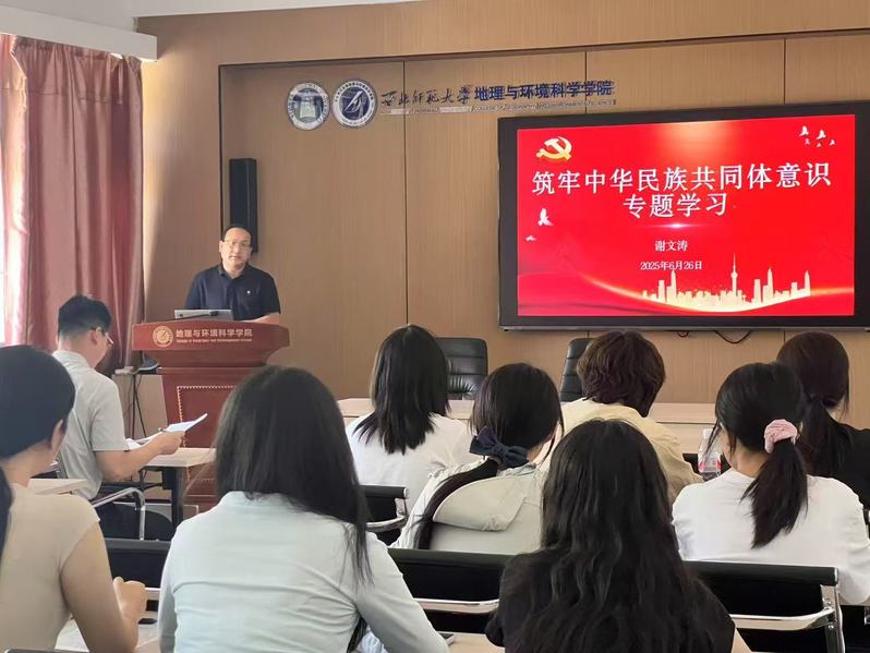 6月25日下午,党委书记于国建给地理科学系本科生第三党支部讲党课,与学生共同学习中央八项规定精神,6月26日上午,于国建给院办教职工党支部作了题为《八项规定改变中国》的专题党课;6月27日,院长、党委副书记马利邦为城市与资源学系教工党支部作了《从“一根灯芯”到“八项规定”——关于2025年党员基本培训第一次集中大课精神的研讨》的党课;2025年6月26日,党委副书记谢文涛为本科生第二党支部作了题为《筑牢中华民族共同体意识专题学习》的党课;副院长姚晓军、张学斌、胡梦珺等也分别于近期为地理信息学系教工党支部、人文地理学研究生党支部及地理科学系教工党支部讲了党课。