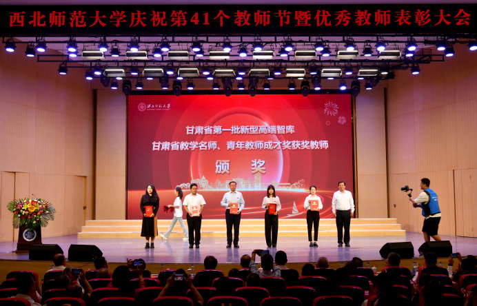校党委常委、纪委书记焦爱胜为甘肃省第一批新型高端智库、甘肃省教学名师、青年教师成才奖代表颁奖