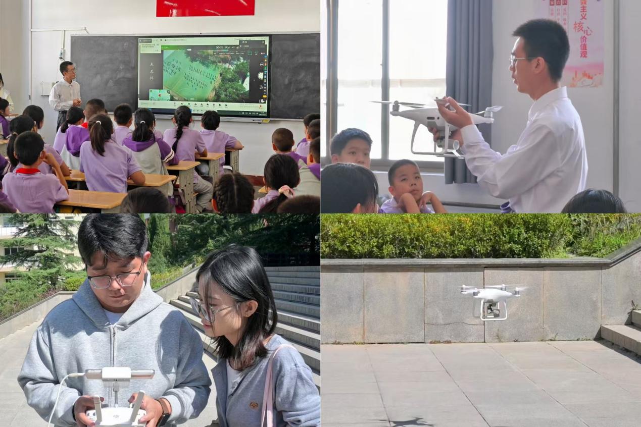 孙冰冰同学带来的《天眼密探——无人机解码地球》将现场气氛推向高潮。通过实物展示与户外实地飞行方式,帮助青少年们了解到无人机在地图测绘、环境监测、农业与灾害评估中的广泛应用。活动现场,无人机室外起飞将实时画面传导到现场屏幕上,引起同学们的阵阵惊叹,激发了孩子们对地理信息技术的好奇与向往。